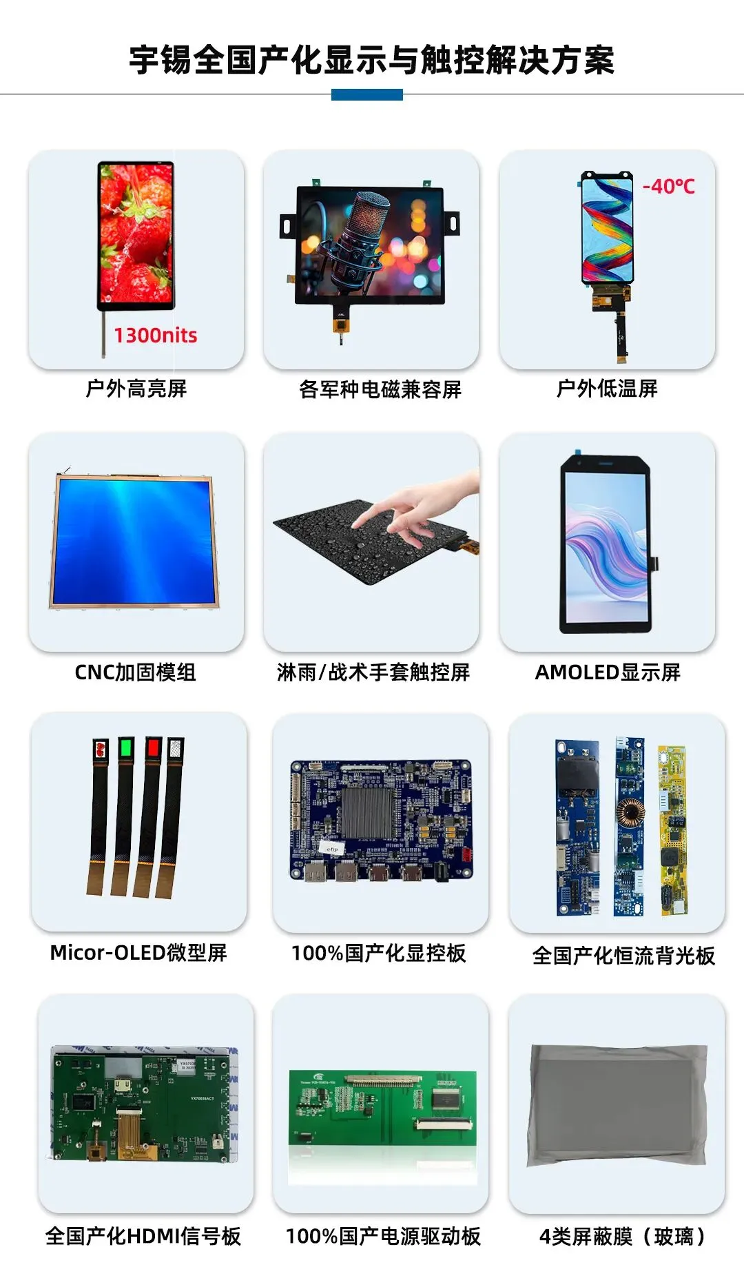 深圳宇锡作为深耕特种显示领域的深圳本土企业,全程深度参与观展,精准捕捉行业流量热点,也全面展现了自身的核心硬实力,每一项优势都精准契合当下产业刚需和搜索热点:主营的全国产化串口屏、显控板及显示模组,元器件100%选用国产供应链,杜绝外部依赖,筑牢自主可控防线,适配军工、信创等核心领域,是当下行业高频搜索的核心需求