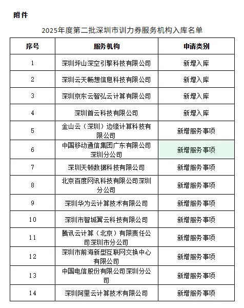 附件:2025年第二批深圳市训力券服务机构入库名单