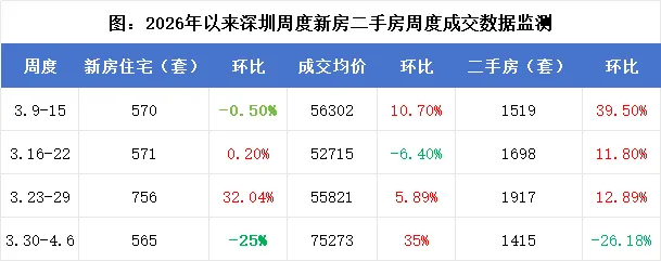 图:2026年4月第一周深圳房地产周度市场概况集成图
