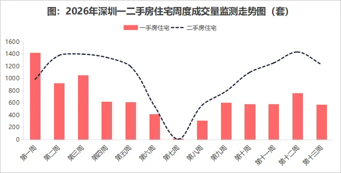 本周深圳新房市场热度有所下降,但房企入市积极性在提升,宝中、前海、深圳湾这些热点楼盘项目正筹备4月踊跃进入市场。4月截止至6日,整体一二手市场剔除清明节假期几天成交量,其他时间成交量二手房多保持在300套日交易量水平,新房则在近200套日成交水平线上,市场仍保持较强热度,月度累计预计会超过8000套成交预期。本分析报告重点监测2026年3月30-4月6日周深圳房地产市场行情及波动情况,核心从市场趋势(含成交、供求)、宏观监测(含政策、城态等)、土地动态、供应监测、访客监测(含新房+二手房)、楼盘热点榜、楼盘案例监测等多维度监测,为房企及购房者提供市场行情式参谋。