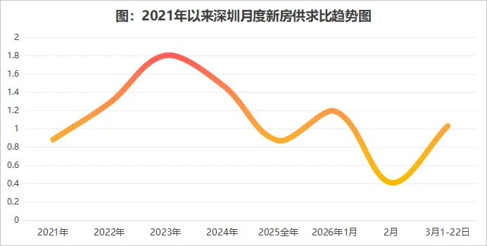 供求比:整体深圳新房截至本周其供求比为1.03:1,持续高于2月份的0.41:1,说明供需仍在走强,其中预售供应在3月也明显增大;深圳新房住宅目前整体去化周期在下降,为7.8个月,但还是高于去年同期3月的7.7个月。此外,预计二季度增量万套供应下,市场的供求比会持续提升,去化周期也可能延长。