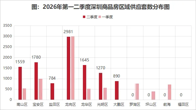下图为今年Q2与Q1深圳新房预计新增供应(套数)的区域对比