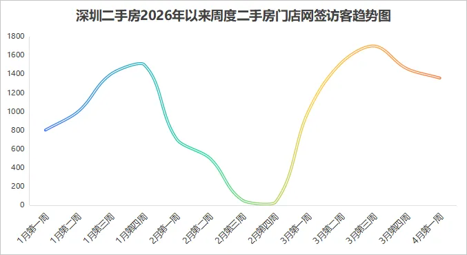 本周(3.30-4.6)深圳二手的访客指数有所降温,但同比保持热度。