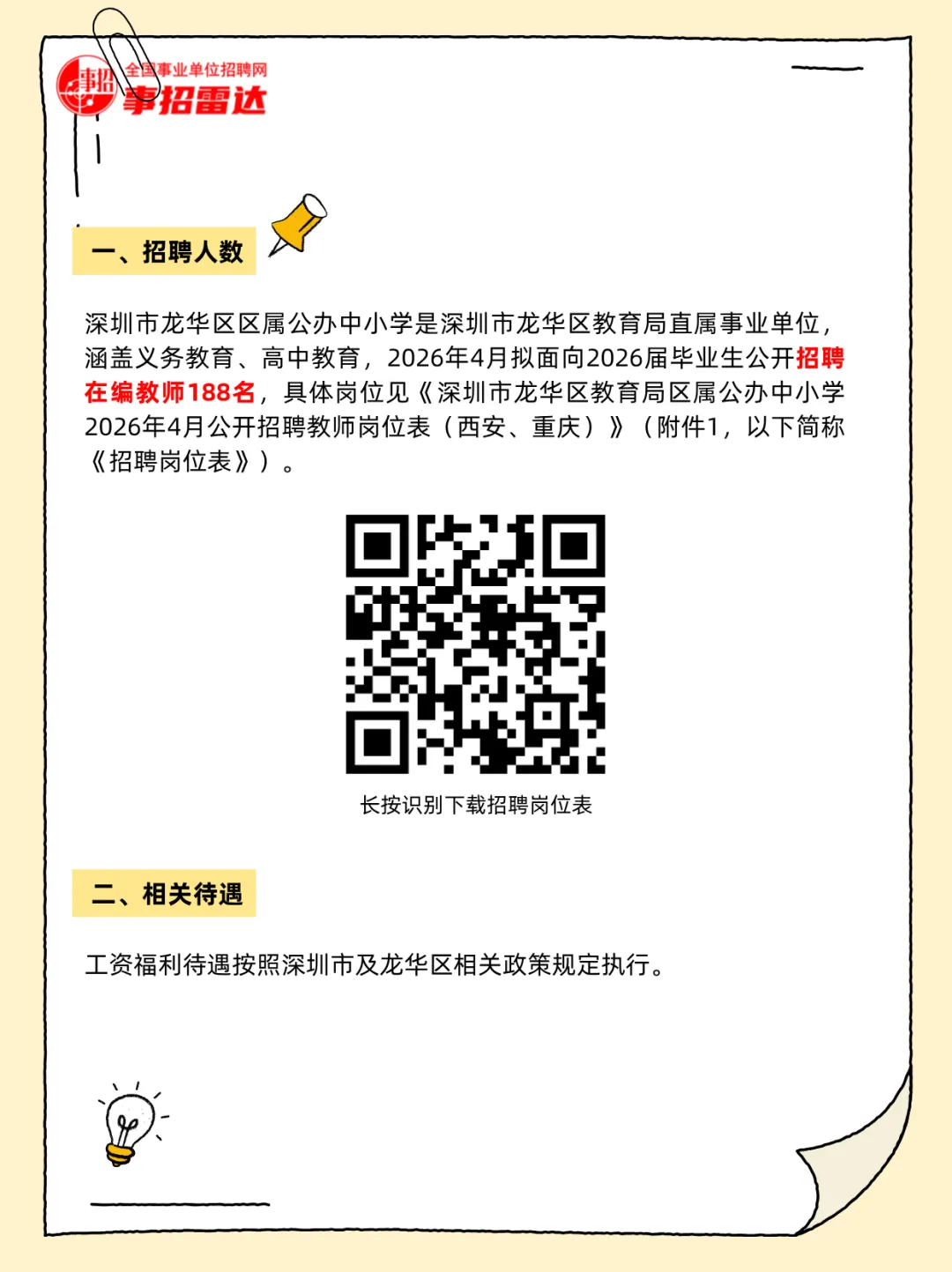 正在报名!2026年深圳市事业单位招聘188个编制教师