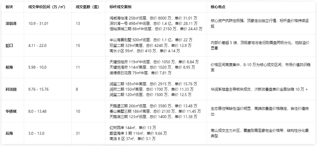 具体来看,南山各板块呈现出截然不同的价格与成交特征,可谓 “冰与火之歌” :