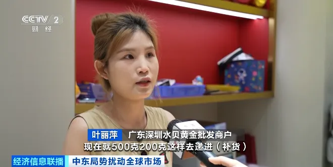 广东深圳水贝黄金批发商户 叶丽萍:这段时间,客户拿货量减半,他可能是少量多次来补,因为行情波动比较大,担心会突然暴跌、暴涨。原来是一两公斤这样进货,现在500克、200克这样递进补货。