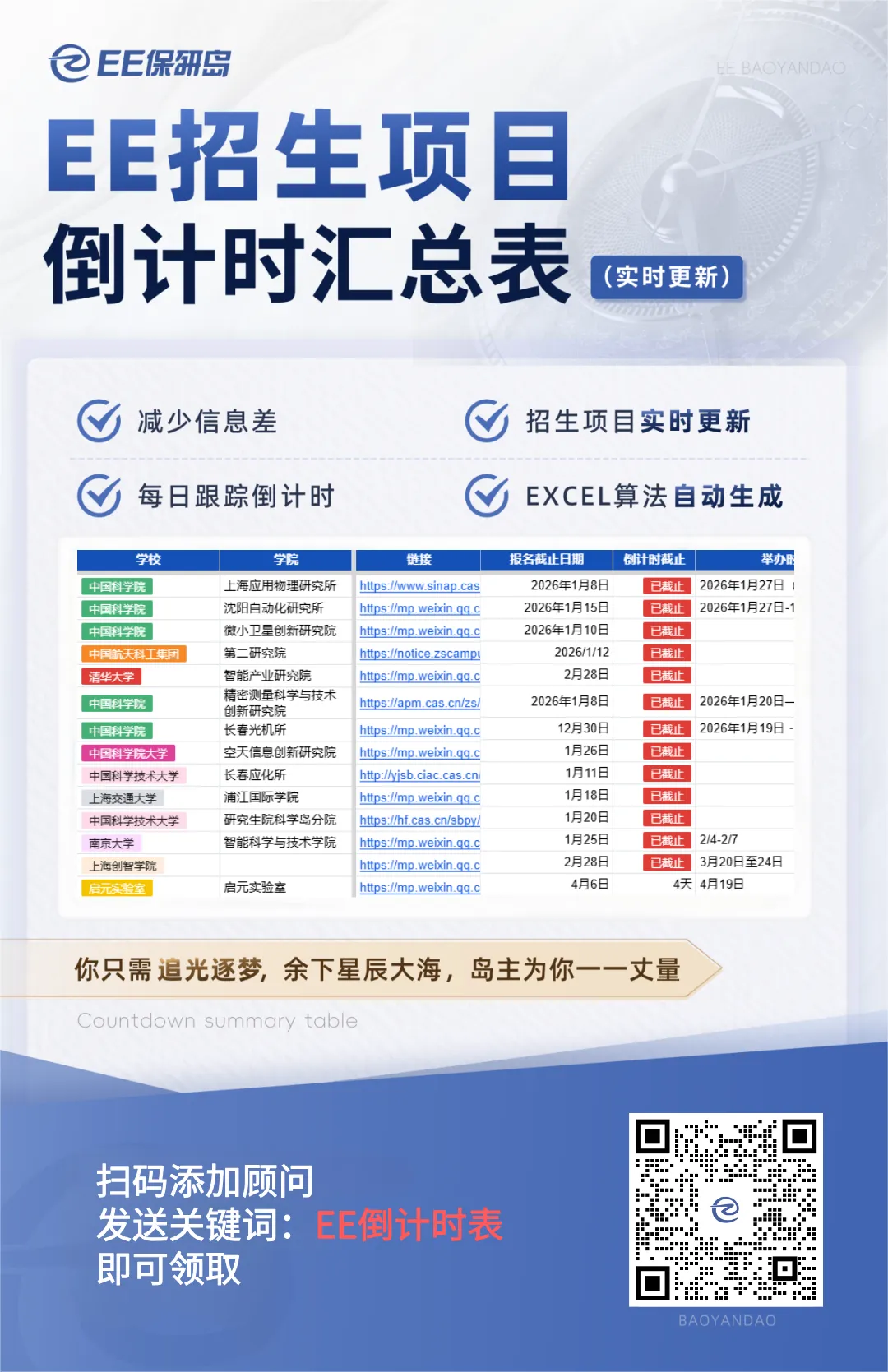26年EE招生项目倒计时汇总表