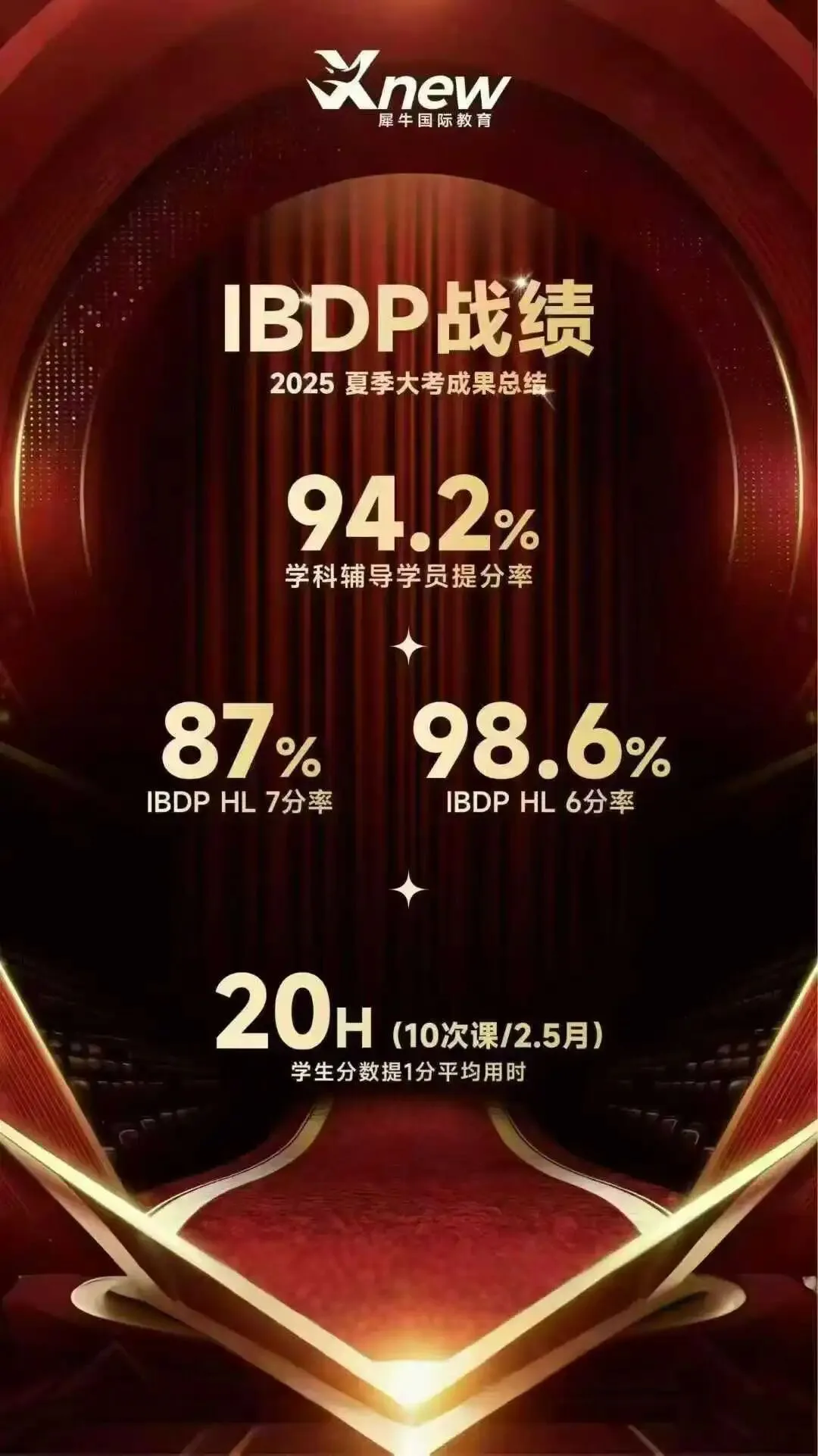 犀牛IB课程整体提分率是94.2%,7分率是87%,6分率是98.6%。