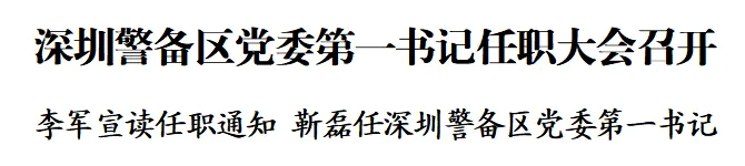 4月9日,深圳警备区党委第一书记任职大会召开。广东省军区党委书记、少将政治委员李军出席会议,宣读省军区党委关于靳磊任深圳警备区党委第一书记的任职通知,并颁发任职证书。市委书记、深圳警备区党委第一书记靳磊作任职讲话。