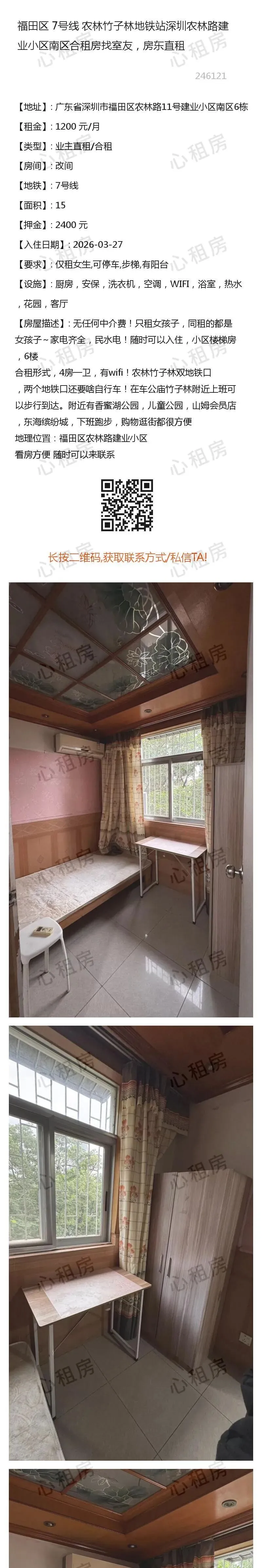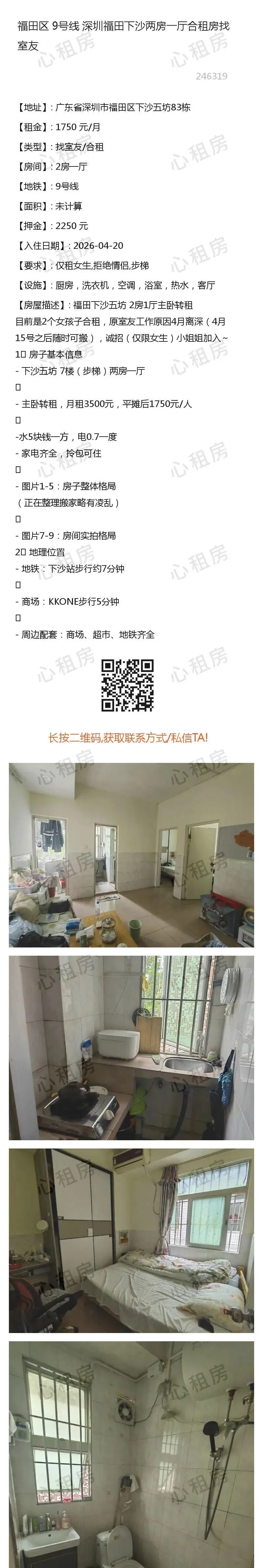 深圳租房【福田2则】房源①:9号线深圳福田下沙两房一厅合租房找室友1750元/月;房源②:.........