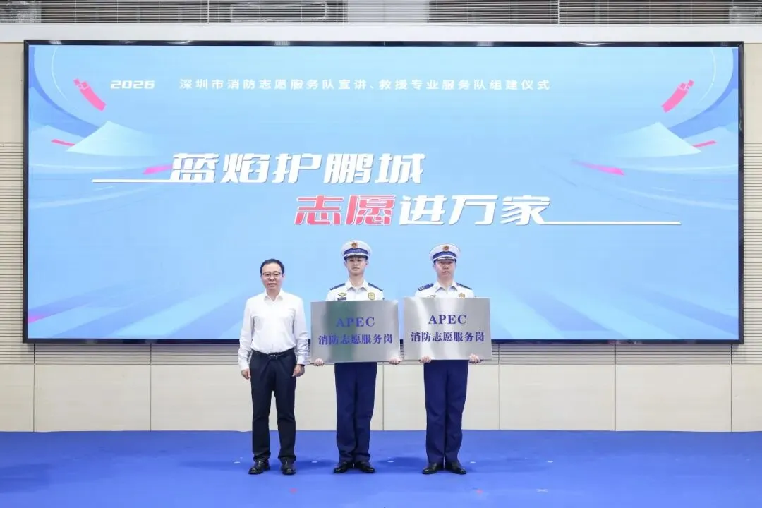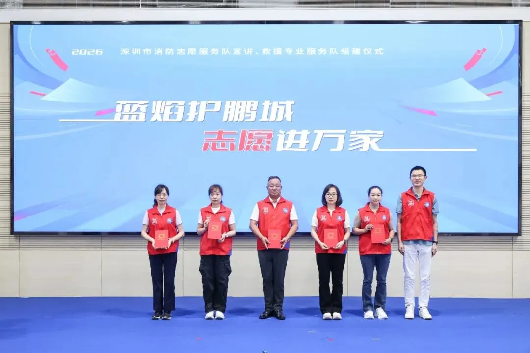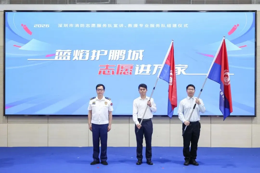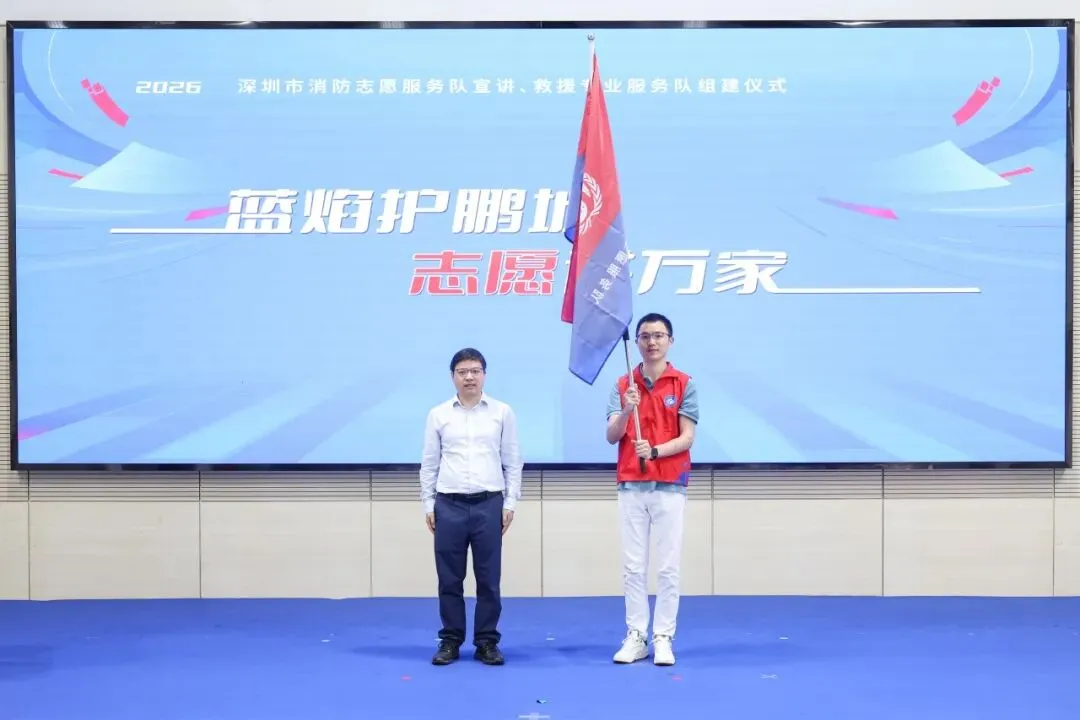 组建仪式上,共青团深圳市委书记胡火明为深圳市消防志愿者联合会授予“消防宣讲志愿服务队”队旗,明确了专业化宣讲的职责使命。深圳市消防救援局局长窦礼念为两名消防安全重点单位代表授予“消防救援志愿服务队”队旗,标志着依托各类单位微型消防站建立的“消防救援部门主导、志愿服务组织联动、志愿者参与”的应急响应机制正式落地。