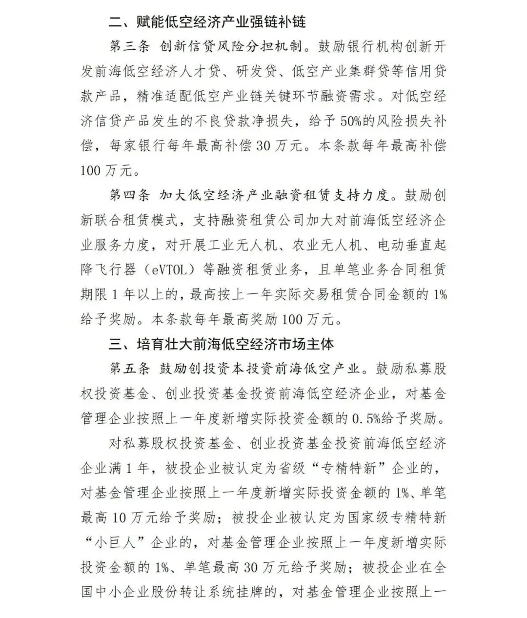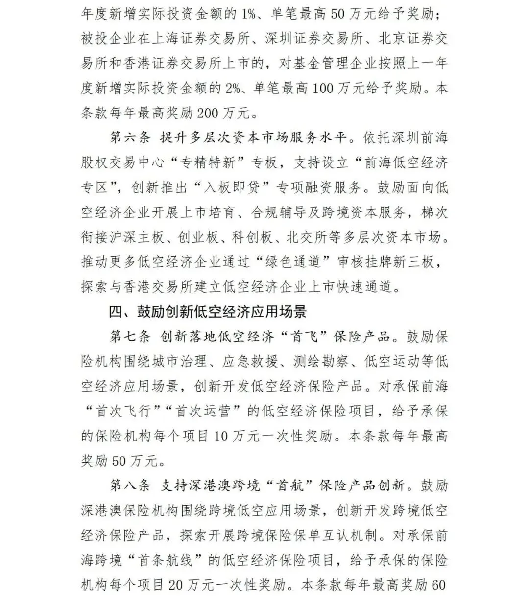 (三)培育壮大前海低空经济市场主体,强化资本赋能产业发展(第5、6条)