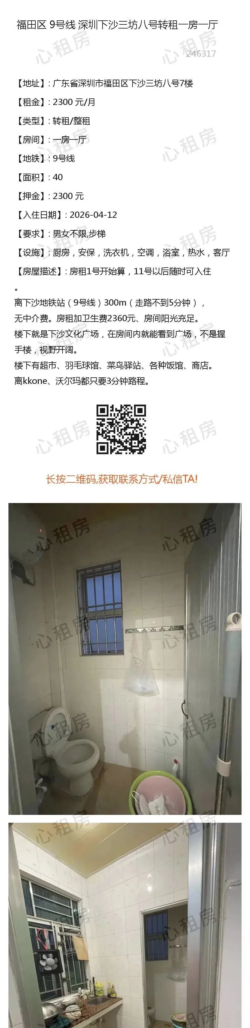 深圳租房【福田2则】房源①:9号线深圳福田下沙三坊八号转租一房一厅2300元/月;房源②:…
