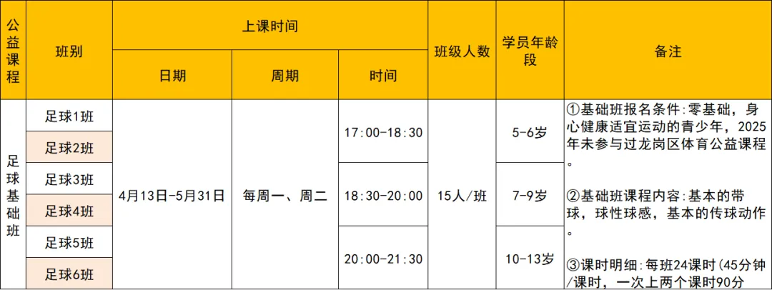 报名成功学员需根据课程安排按时按地上课,首次上课需持本人身份证核对一致方可上课,学员不得无故缺勤。如发生核验人证不一致、学员明显不符合培训项目报名条件要求、连续缺课2次、或者当期课程总缺勤次数达3次(含)的情况,视为放弃本期培训,同时被纳入公益培训项目黑名单,一年内不再享有龙岗区公益体育培训课程权益。