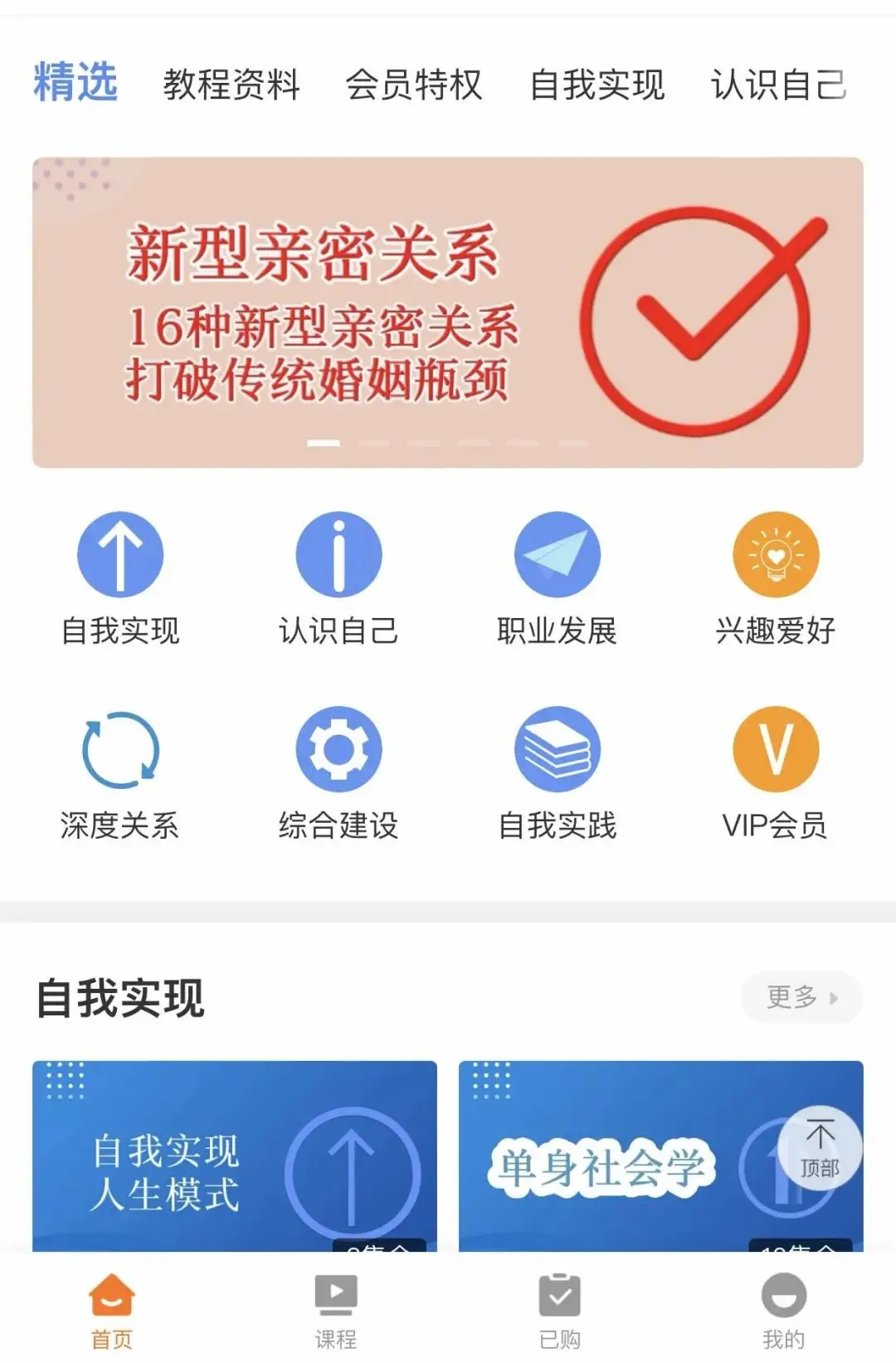 自主择偶模式重在自我建构,专门配有自我实现主题网站,100节以上超大容量课程,帮助您完成个性探索、职业规划、兴趣爱好培养、情感选择。