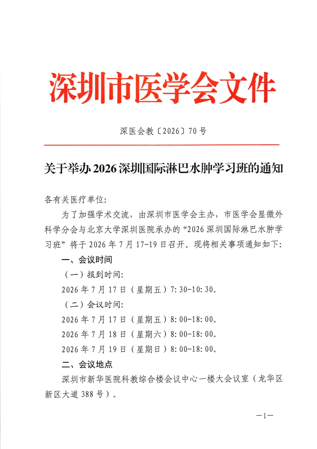 不出国门,对话世界!由深圳市医学会主办,市医学会显微外科学分会与北京大学深圳医院承办的「2026深圳国际淋巴水肿学习班暨第二届国际学术盛会,即将于2026年7月17-19日在深圳市新华医院盛大召开!