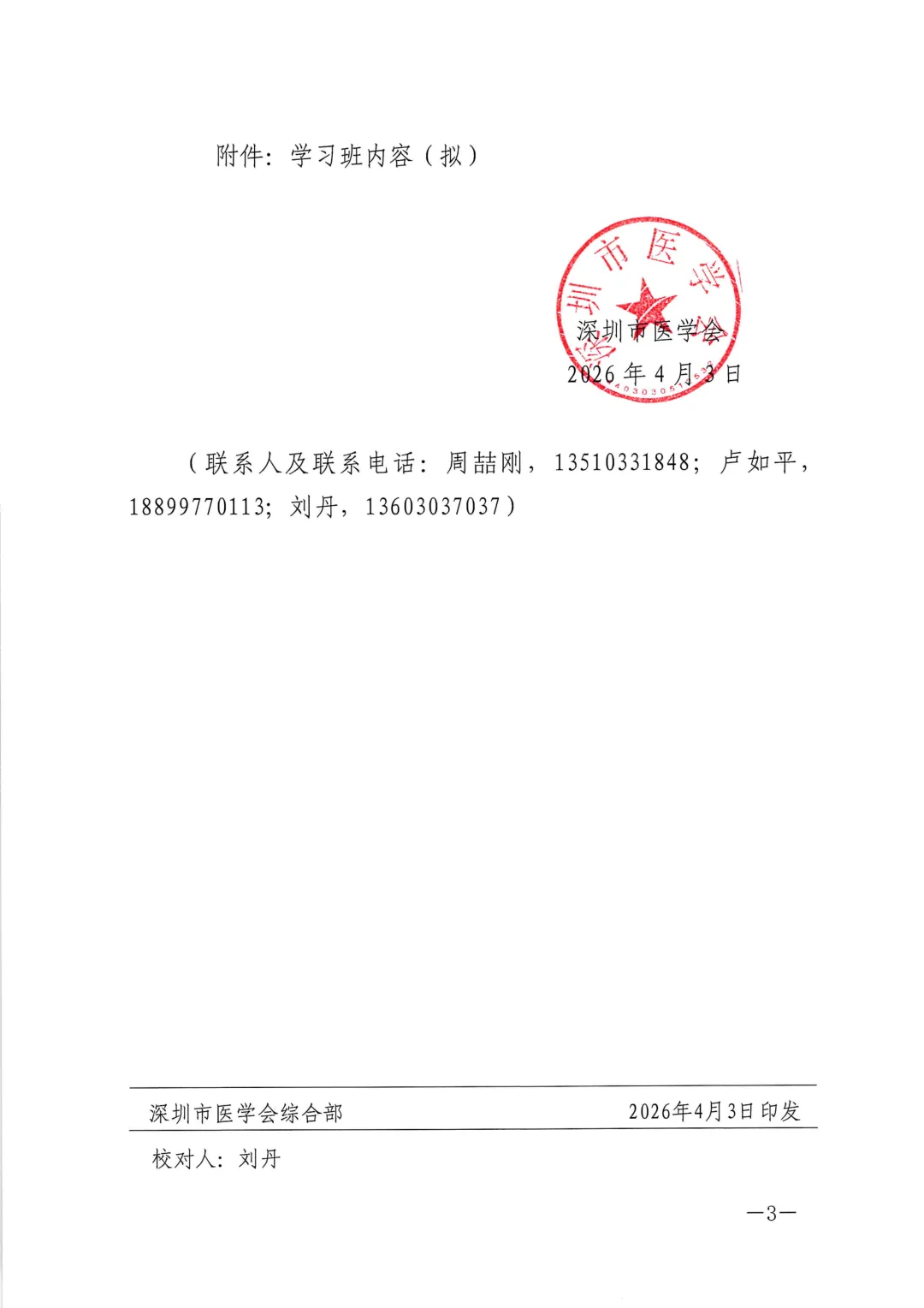 注:学员差旅、食宿费自理,深圳市医学会统一开具电子发票