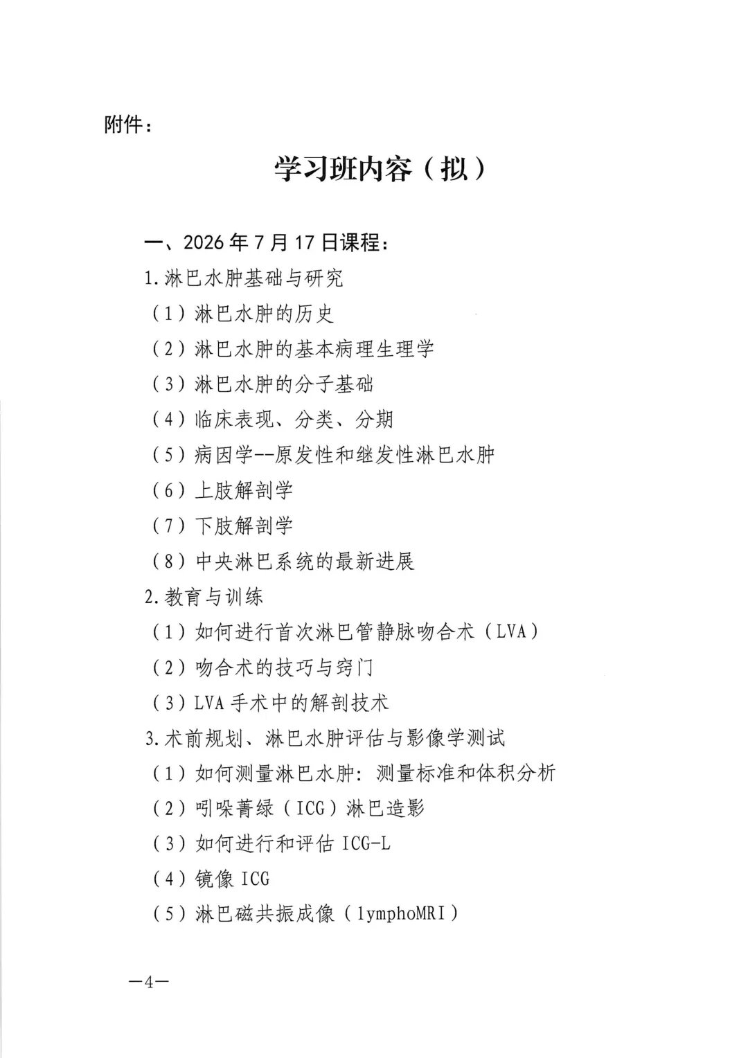 系统理论授课:淋巴水肿基础与研究、术前评估与影像学诊断(ICG、lymphoMRI、超声)、外科治疗策略(LVA、LNT、吸脂术)、术后管理与CDT综合消肿治疗等全领域覆盖。
