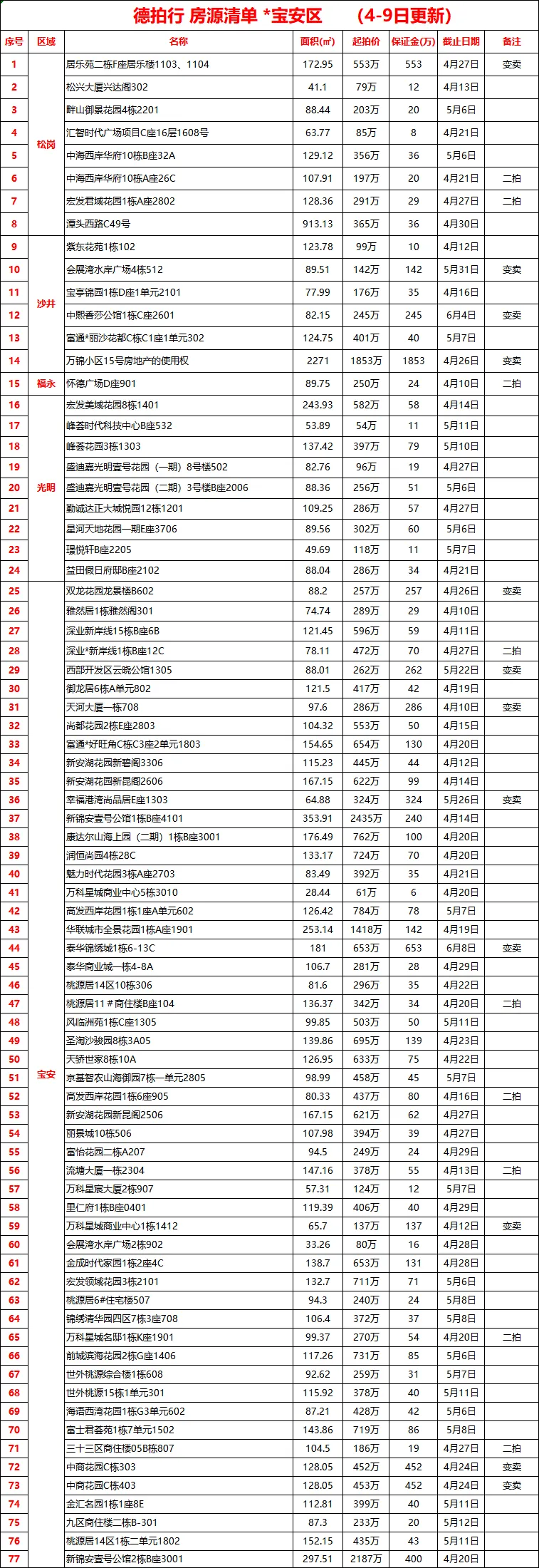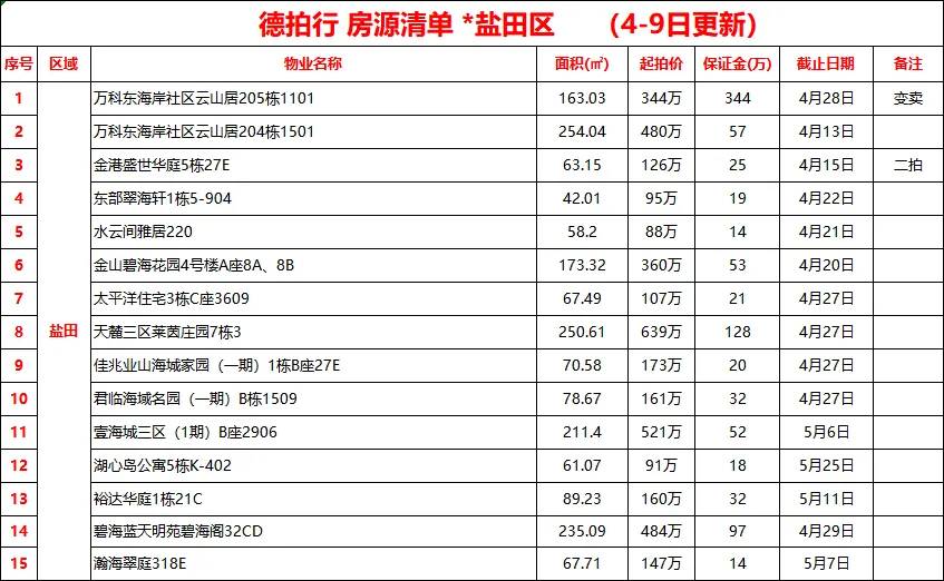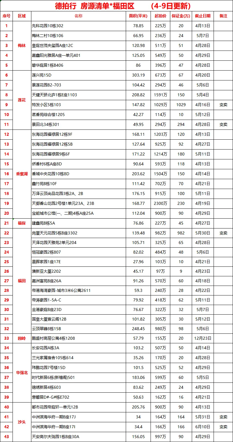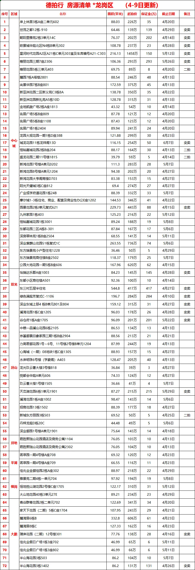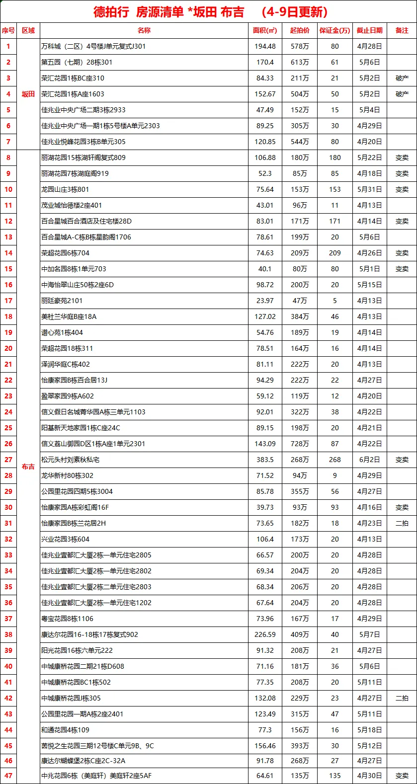 深圳德拍行科技信息有限公司(以下简称“深圳德拍行”)成立至今,是深圳第一家专业从事国有企业、法院、检察院、银行房产处置拍卖代理的信息咨询公司,致力于在资产重组、产权交易代理投资风险控制等相关领域提供全面的资产管理咨询(包括资产尽职调查、拍卖咨询、全程代理拍卖、代办过户文件、清理移交障碍、实物移交、按揭贷款、清理过户障碍、协助权证过户等一系列服务),帮助客户分析、制定具备可操作性的最优解决方案,为客户及商业伙伴创造真正的效益和价值。德拍行为您筛选深圳全市拍卖房源信息如下:、
