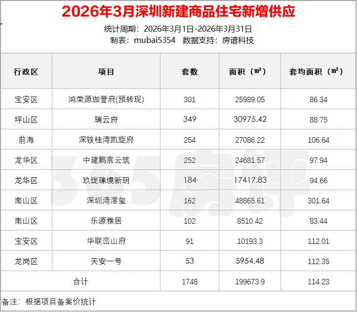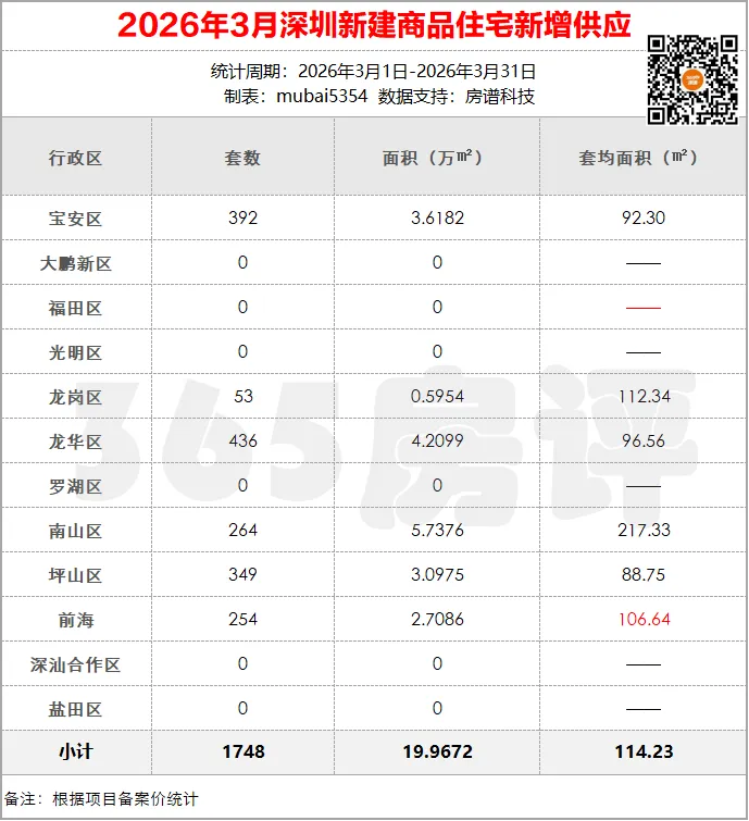 新建商品住宅供应量2026年3月,全市9项目获批预售证,新增一手住宅1748套、19.9672万平方米,套均面积114.23平方米。