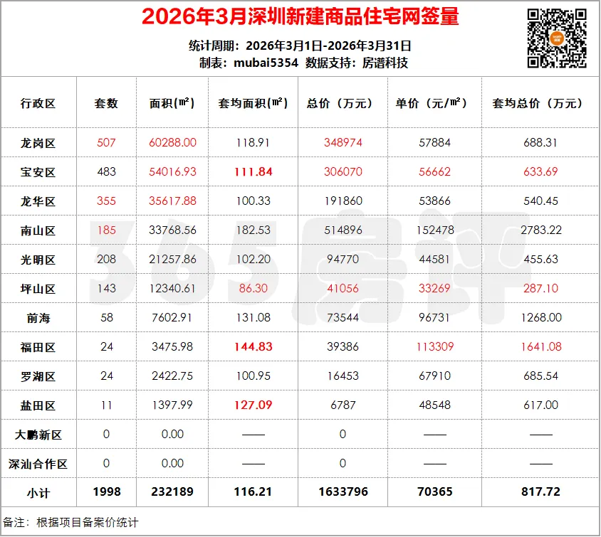 网签套数前三:龙岗区、宝安区、龙华区