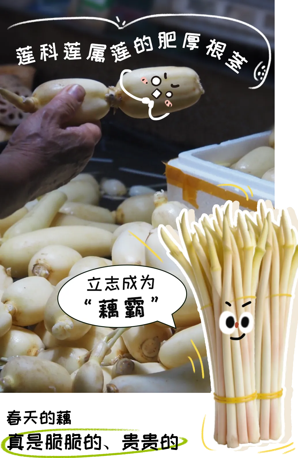 莲的生长方式与竹有异曲同工之妙——可以通过横走的根茎快速分蘖生长。在以长江流域为核心的笋、藕主产区的人们,每年春天都要抢在土里的竹笋和水下的藕竞相长大之前,采下这春日的鲜嫩。