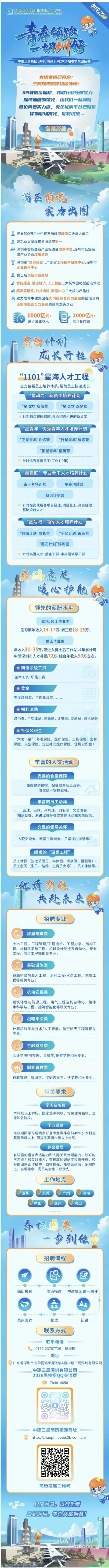 招聘 | 中建三局集团(深圳)有限公司、中建八局第一有限公司、中建八局浙江建设有限公司 | 2026届春季校园招聘正式启动