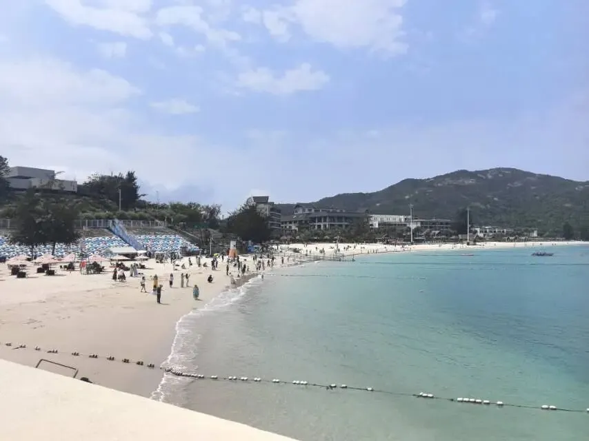 第二天去了鹿嘴山庄,路上经过桔钓沙,看到了比大梅沙还清澈的蔚蓝色海。在山庄里找到了《美人鱼》的拍摄地,返程时坐了摩托艇,十几分钟,很爽。