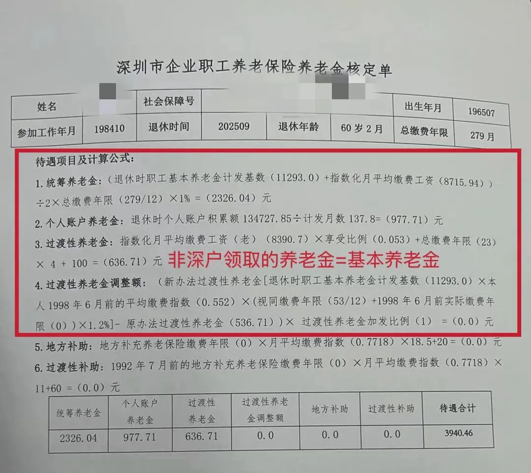 这四项全部都是基本养老金,也就是说,非深户2025年12月领取的养老金总额,就是今年普调时的基本养老金基数。