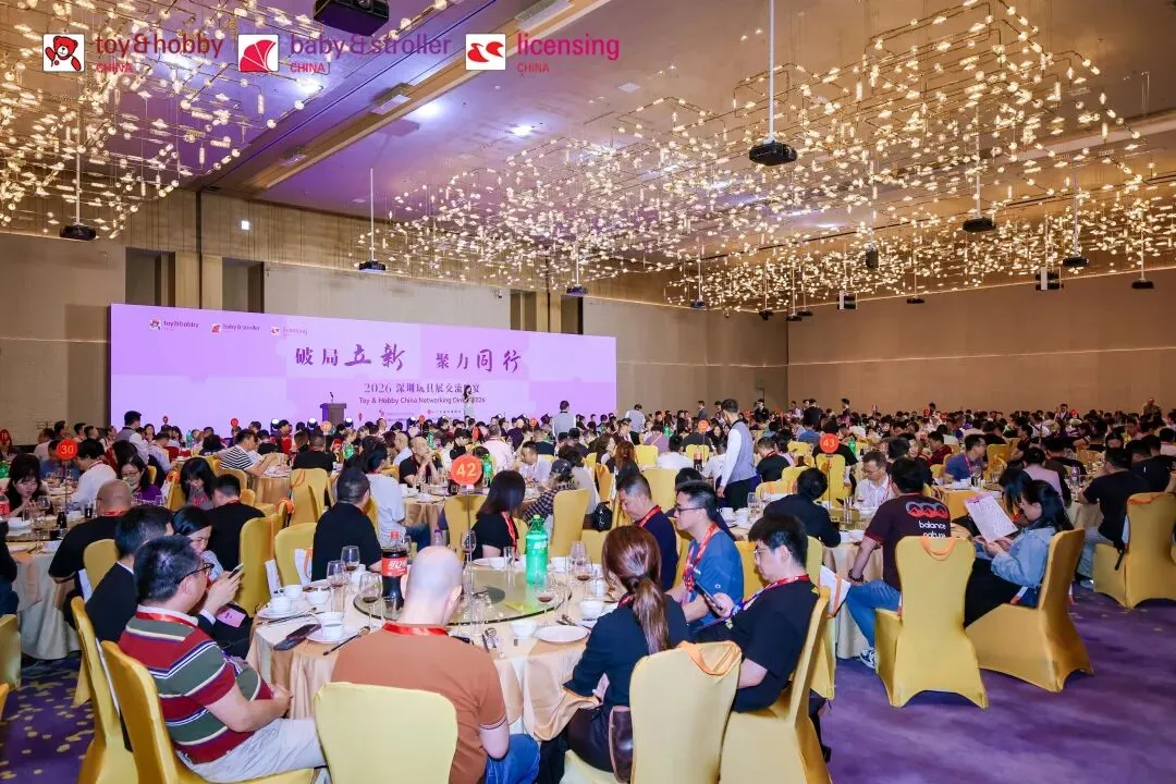 当晚,主办方在希尔顿酒店2楼招华宴会厅举办以“破局立新 聚力同行”为主题的“2026深圳玩具展交流晚宴”,国内外数百位行业精英齐聚一堂,交流碰撞,共绘行业新篇。