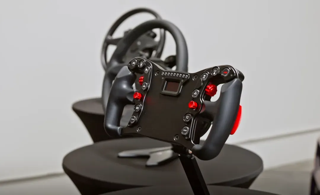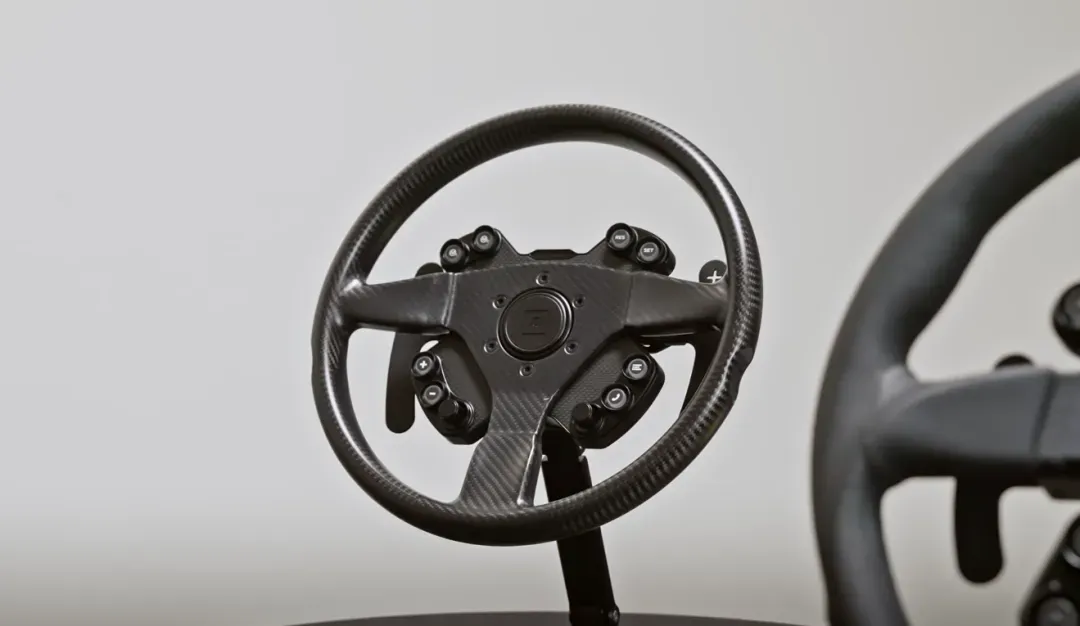 290mm锻造铝合金骨架包覆高抓握力橡胶,配备锻造铝合金拨片和旋钮。与Clubsport、Podium使用相同的转接底座和快拆系统,可轻松互换。支持多组预设切换,标配OLED显示屏,无需电脑即可自定义按钮。
