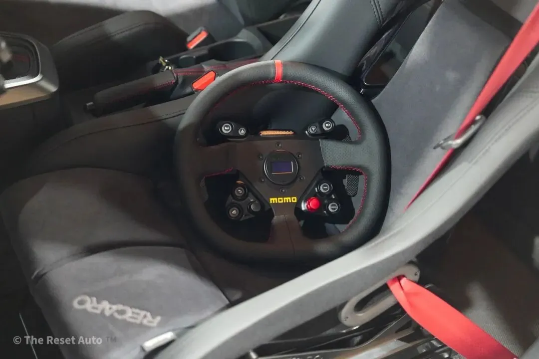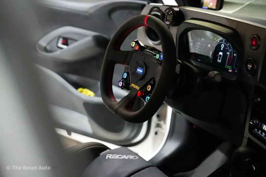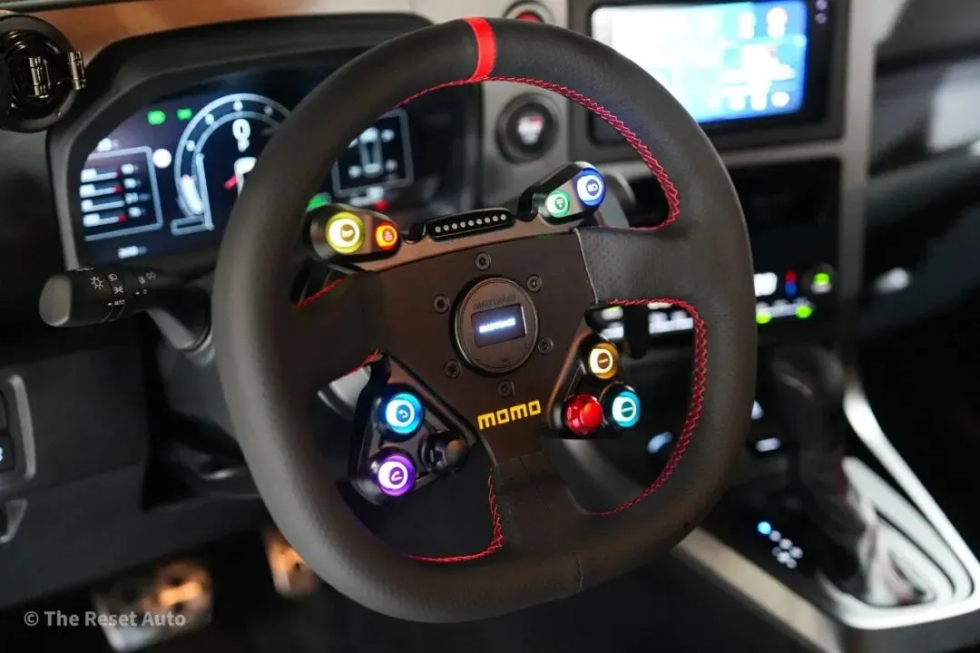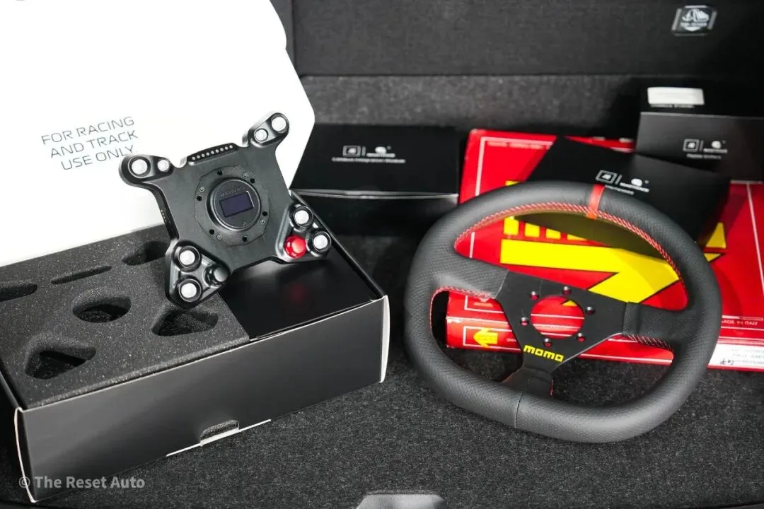 支持按钮全自定义,配合RGB背光自由调节亮度和颜色。采用干碳纤维和锻造铝合金制造,标配干碳磁吸换挡拨片,换挡干脆精准。可选装OLED驾驶员信息显示屏,实现实时调整和更多个性化设置。在保留原厂舒适与便利的同时,带来赛道化驾驶体验。