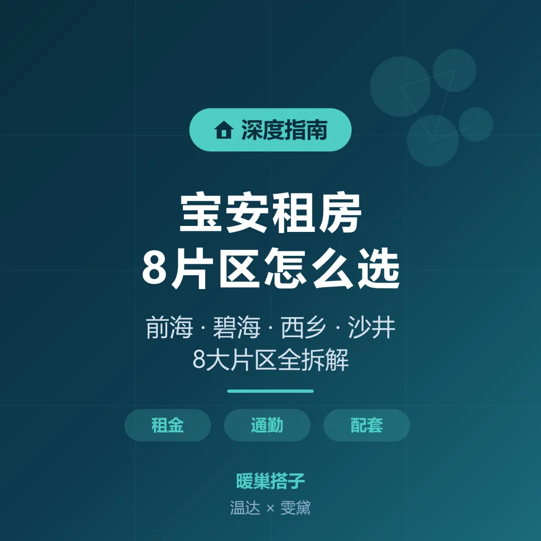 温达: 选区的核心还是那条:先算通勤时间,再看租金,最后比生活配套。 宝安8个片区哪个最适合你,用前面那张总表对一遍就清楚了。有具体问题欢迎留言,后面几期我们会继续拆其他区。