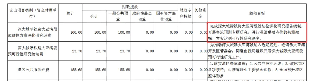 2026年惠州大亚湾经济技术开发区管理委员会交通运输和海洋经济局部门预算中提到了深大城际大亚湾段。