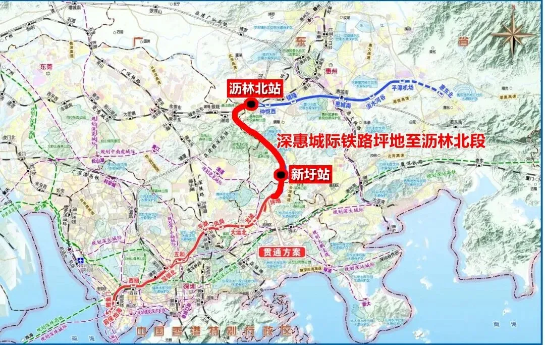 ▲深大城际铁路工程线路平面示意图
