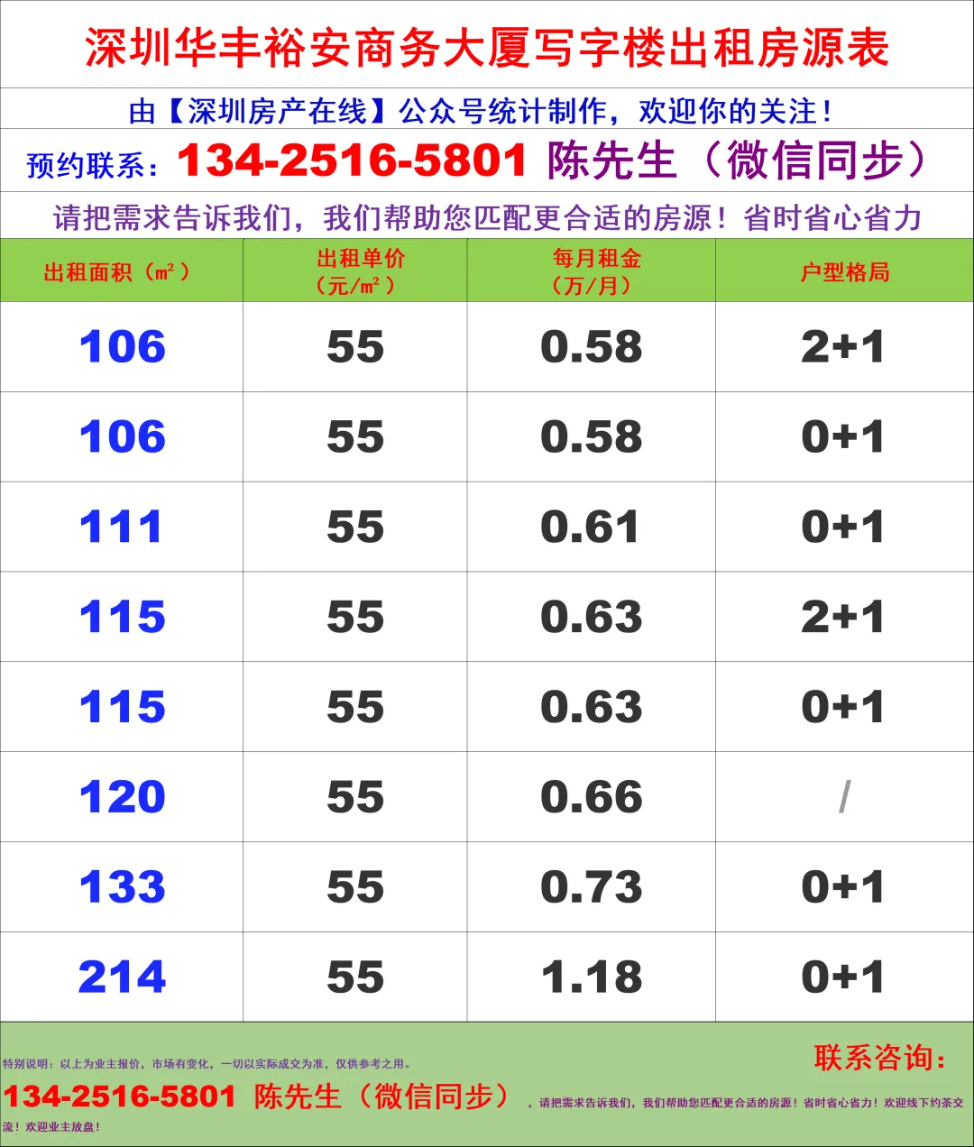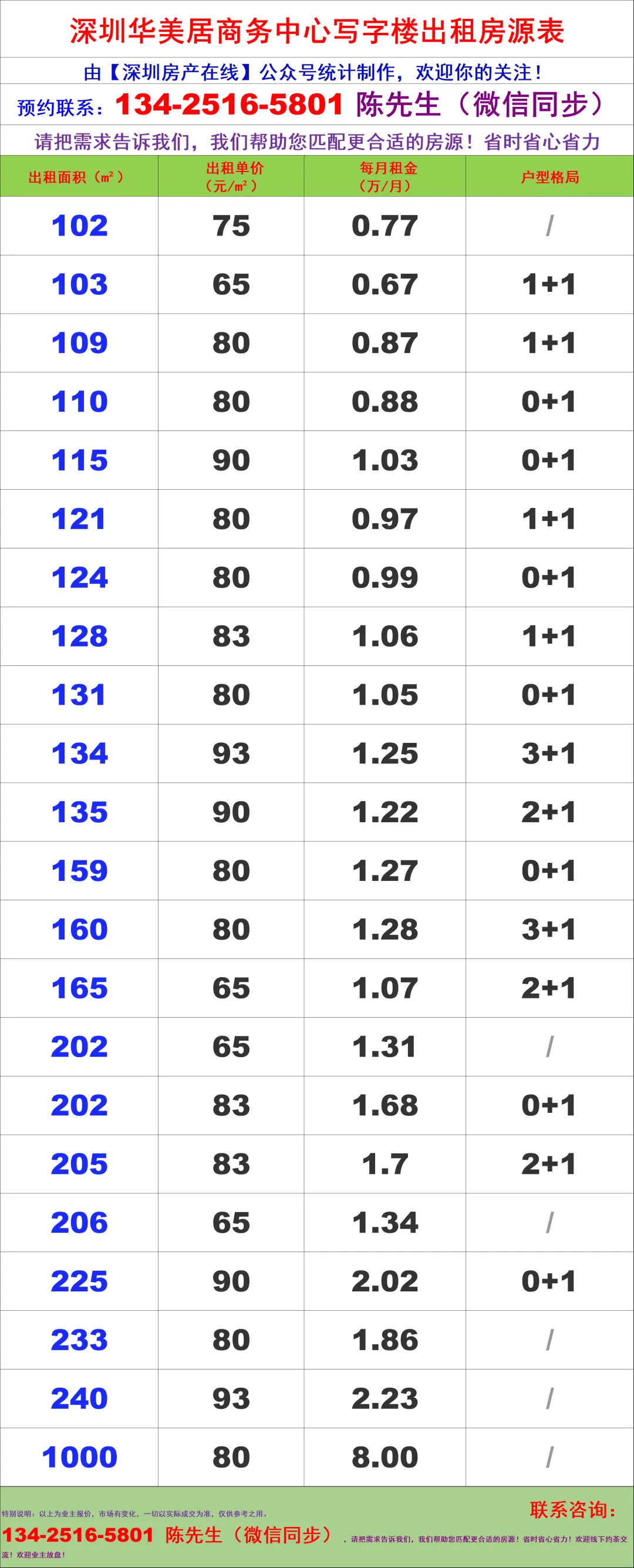 说明:市场有变化,以上房源数据仅供参考之用,一切以实际成交数据为准,【深圳房产在线】陈经理团队:134-2516-5801(微信同号)