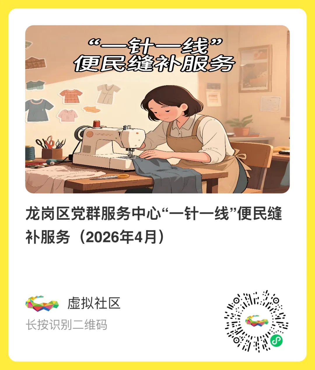 福利2:省钱!龙岗区便民缝补(4月15日起多场)
