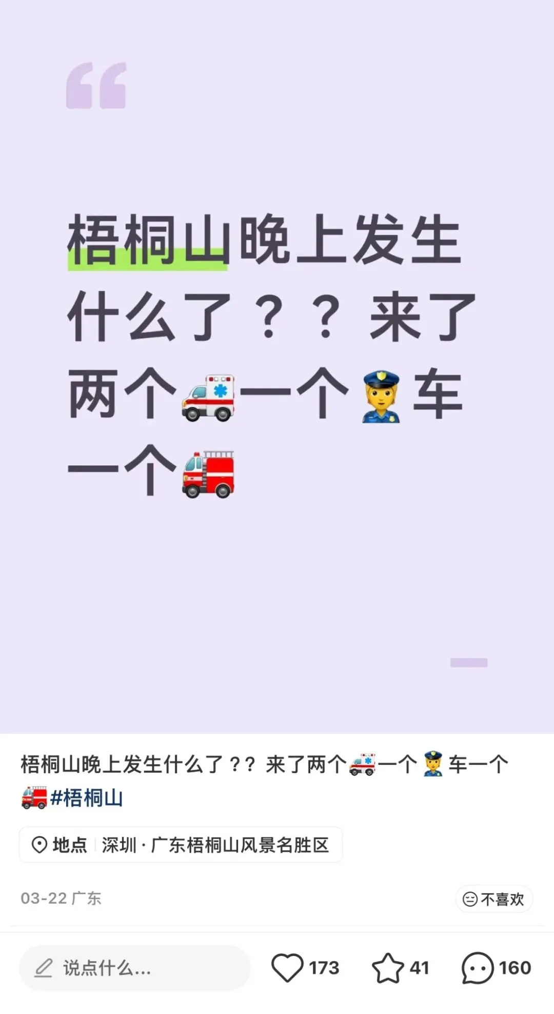 3月28日上午,一名27岁的女子在梧桐山燕子崖非开放区域不慎滑坠,左侧多部位受伤,活动受限。