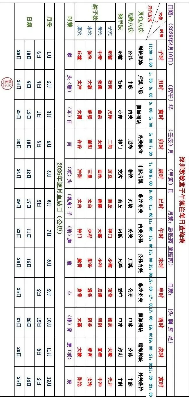 深圳敦敏堂《子午流注:今日开穴》 2026 4月10日