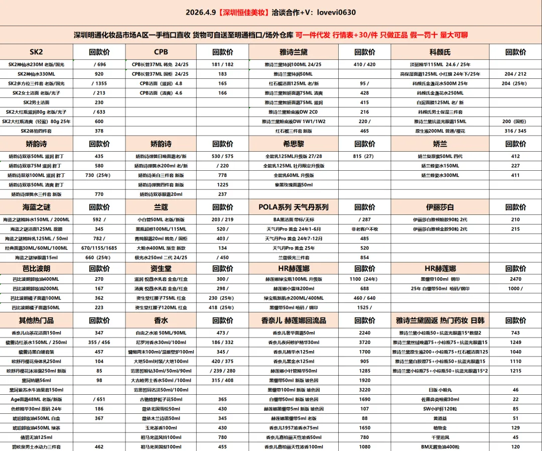 2026.4.9深圳恒佳美妆结算价(明通一手档口直收)