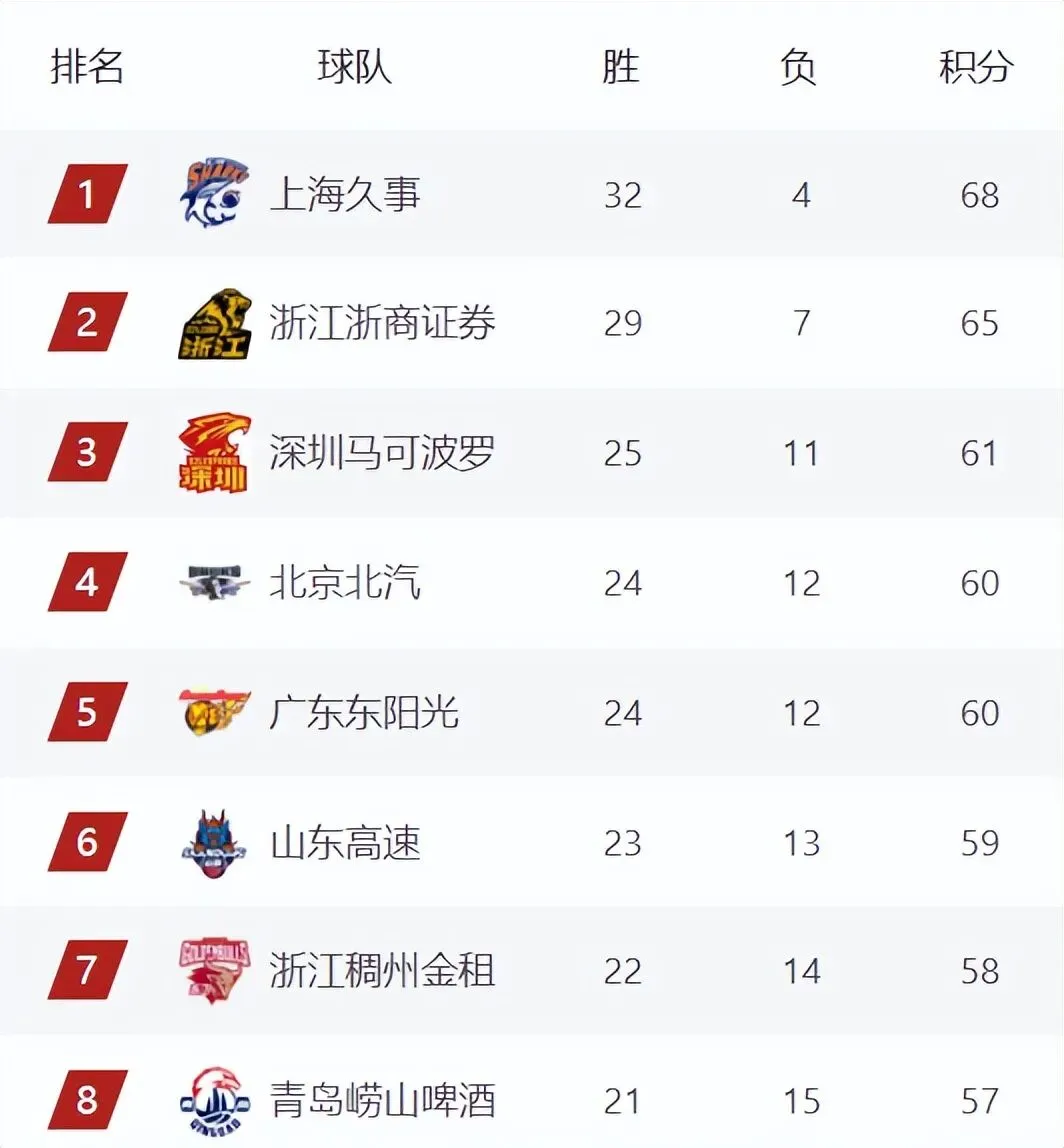 随着常规赛的深入,积分榜前四名上海、广厦、广东、深圳已经基本锁定季后赛席位,他们将为更好的排名而战;而第5到第12名的争夺则异常激烈,一场比赛的胜负就可能改变多支球队的排名。