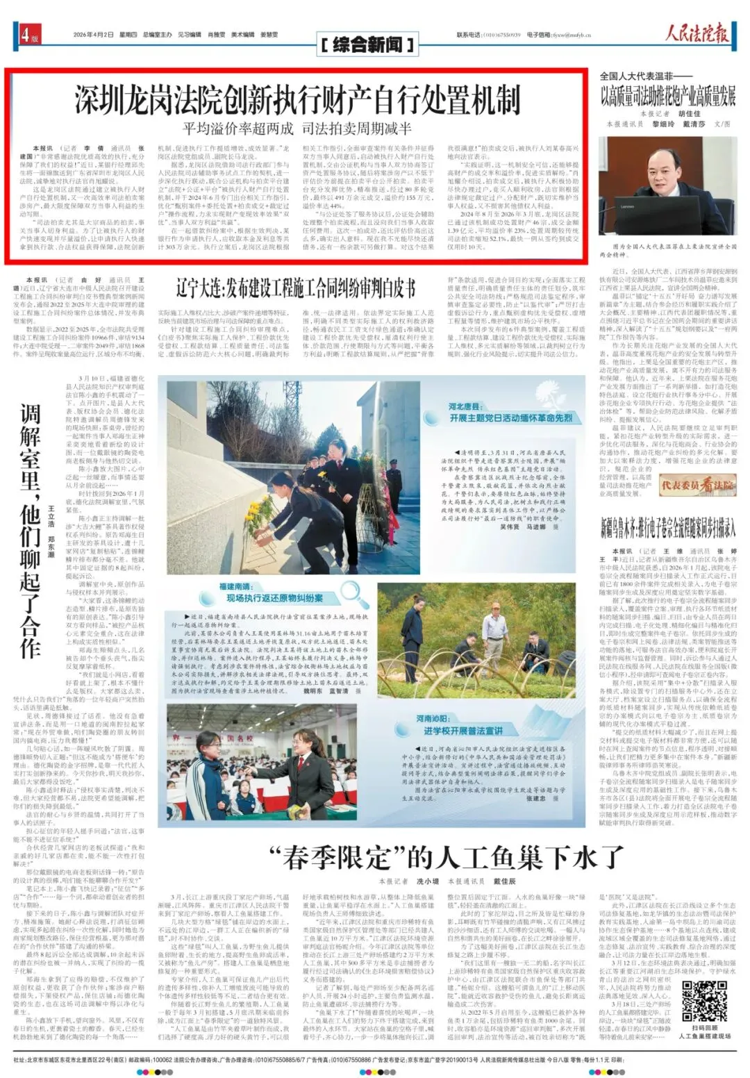 “司法拍卖尤其是大宗商品的拍卖,事关当事人切身利益。为了让被执行人的财产快速变现并尽量溢价,让申请执行人快速拿到执行款、合法权益获得保障,法院创新机制、促进执行工作提质增效,成效显著。”龙岗区法院党组成员、副院长马龙说。近年来,龙岗区法院借助司法行政部门参与人民法院司法辅助事务试点工作的契机,进一步深化执行联动,联合公证机构与拍卖平台建立“法院+公证+平台”被执行人财产自行处置机制,并于2024年6月专门出台相关工作指引,优化“甄别案件+委托处置+拍卖成交+裁定过户”操作流程,力求实现财产变现效率效果“双优”、当事人双方利益“共赢”。在一起借款纠纷案中,根据生效判决,某银行作为申请执行人,应收取本金及利息等共计303万余元。执行立案后,龙岗区法院根据相关工作指引,全面审查案件有关条件并征得双方当事人同意后,启动被执行人财产自行处置机制,交由公证机构与当事人双方协商签订资产处置服务协议,随后将案涉房产以不低于评估价为前提在拍卖平台公开拍卖。拍卖平台充分发挥优势,精准推送,经过80多轮竞价,最终以491万余元成交,溢价约155万元,溢价率达44%。