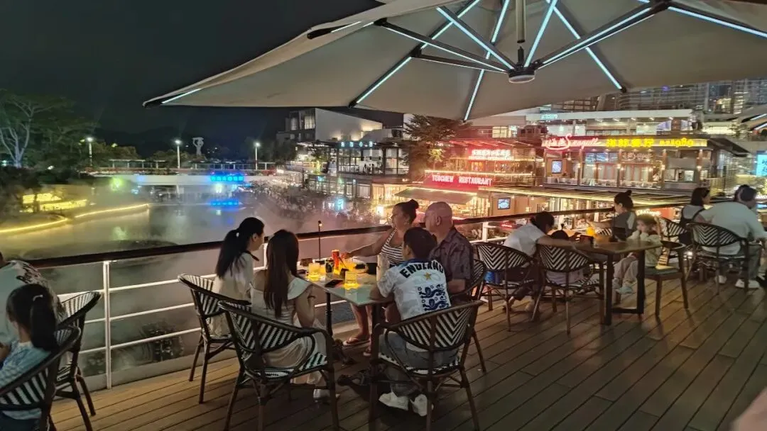 船上用餐可以俯瞰喷泉。