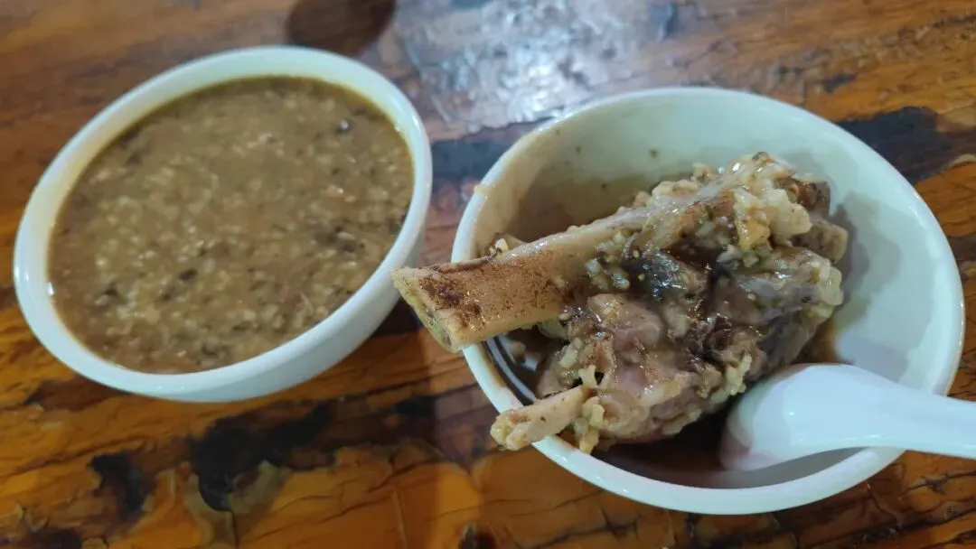 猪骨粥,自己做吧肯定没法吃,人家也不知道怎么做的,绝了。