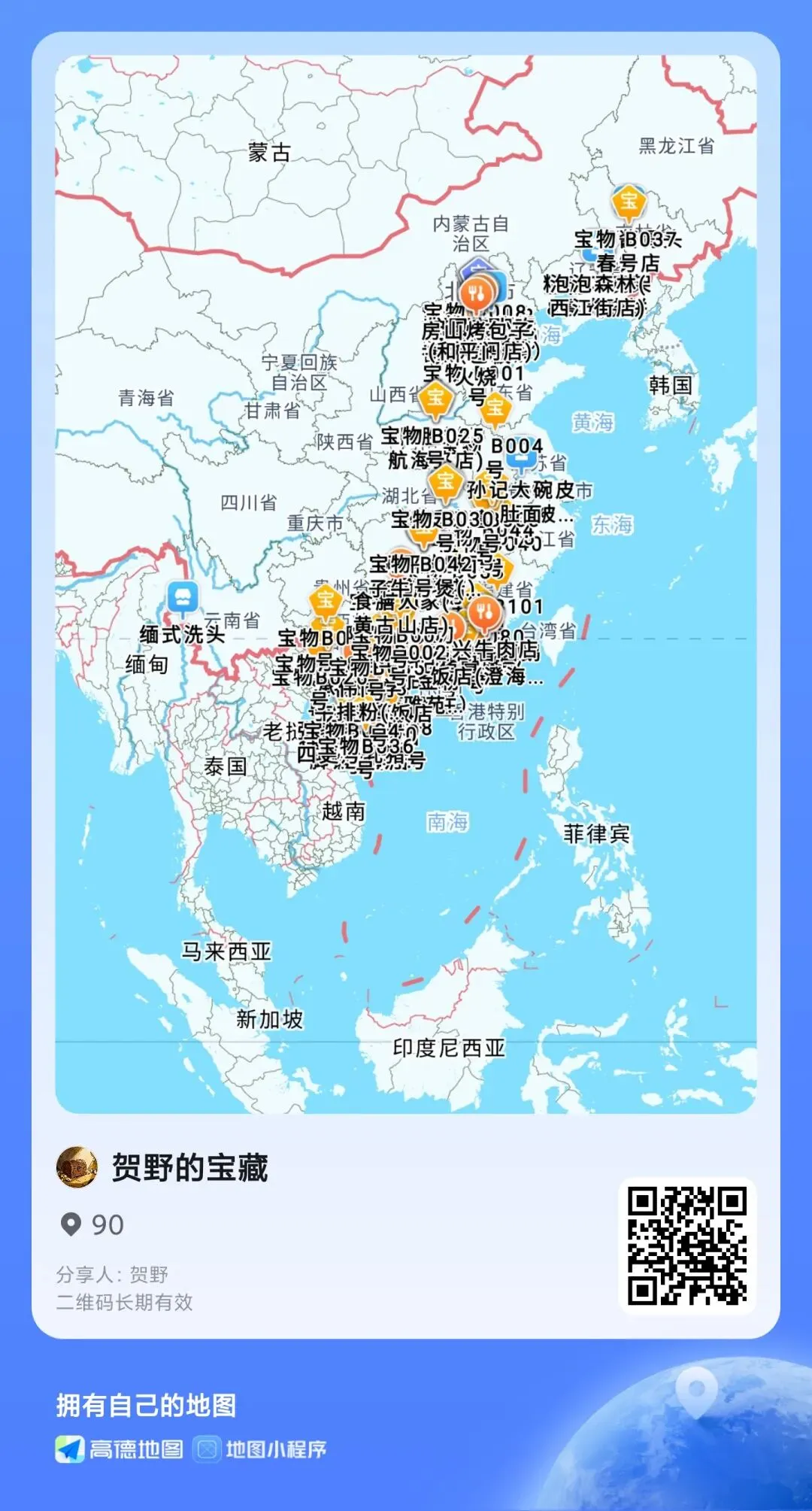 我的藏宝图可不只是我藏的宝啊,还有这一路吃的美食,对我来说都是“宝藏”,扫右下的二维码,可以看到每一个图标的位置、照片和文字。
