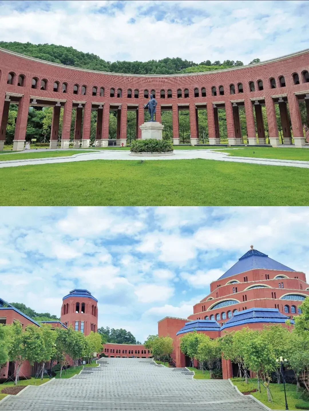 校区占地4700多亩,纯走路的话大人孩子都累。好消息是,校内可以用支付宝扫码租共享电动车!带着娃迎着风骑上一圈,轻松又快乐,孩子也会觉得很有趣。2. 图书馆(光明顶)—必打卡