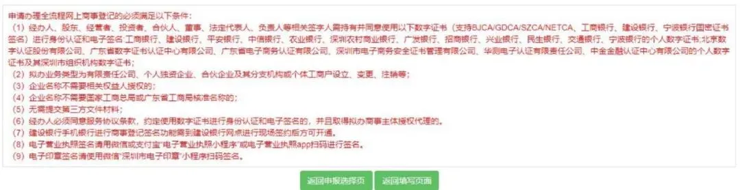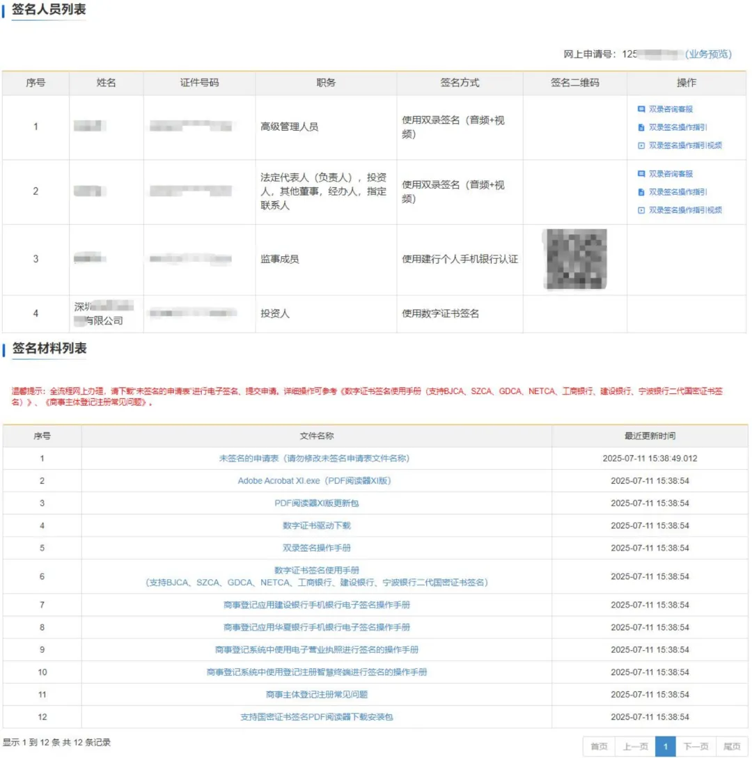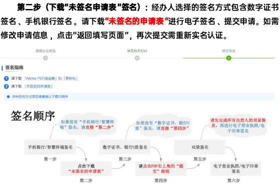 (2) 签名详细操作可参考《双录签名操作手册》、《数字证书签名使用手册》、 《商事登记应用手机银行电子签名操作手册》、《商事登记系统中使用电子营业执照进行签名的操作手册》、《商事主体登记注册常见问题》。