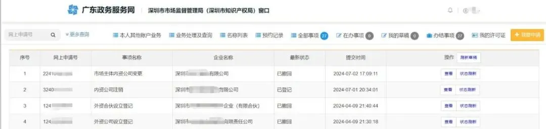 经办人可登录商事主体登记注册系统查询审核结果,最新状态对应以下情况: