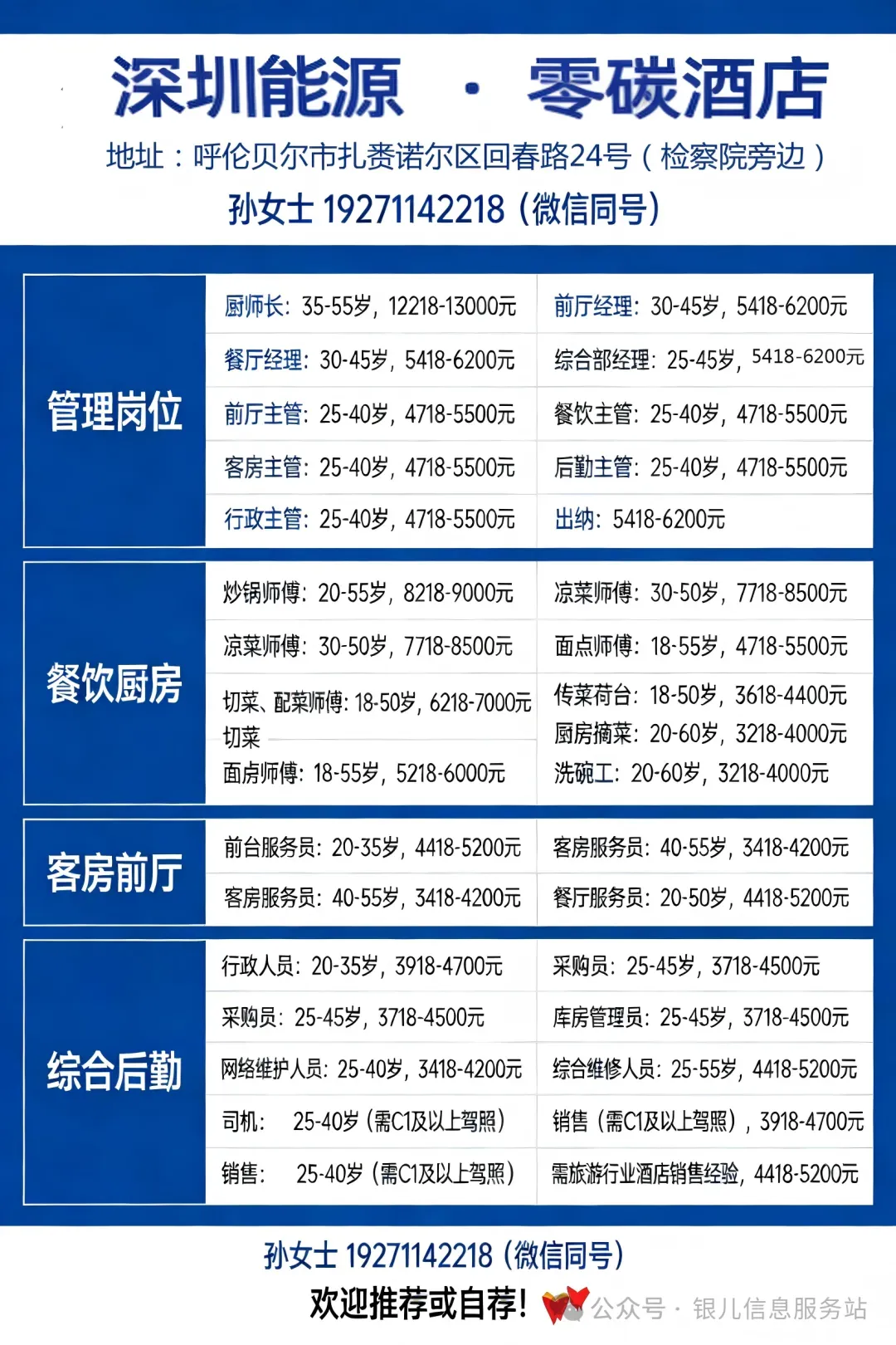 ✅ 前台服务员:20-35岁,4418-5200元
