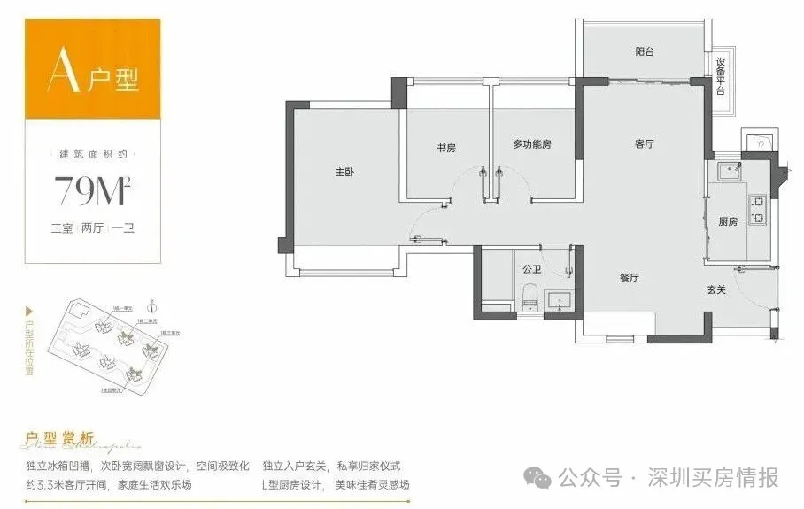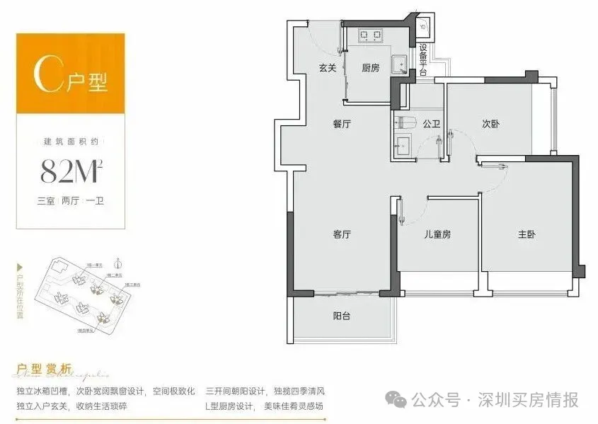 独立冰箱凹槽,宽阔飘窗设计,空间极致化